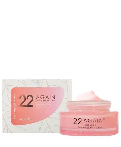 Sản phẩm 22 Again là kem dưỡng da làm chậm quá trình lão hóa ở phụ nữ, với chiết xuất từ thành phần thiên nhiên lành tính được nhập khẩu 100% tại vườn nguyên liệu chất lượng hàng đầu ở Hàn Quốc.