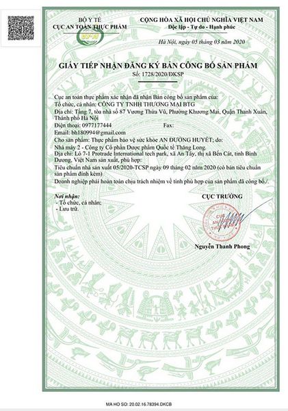 An Đường Huyết có giấy phép của Bộ Y Tế ? Giấy chứng nhận An Đường Huyết