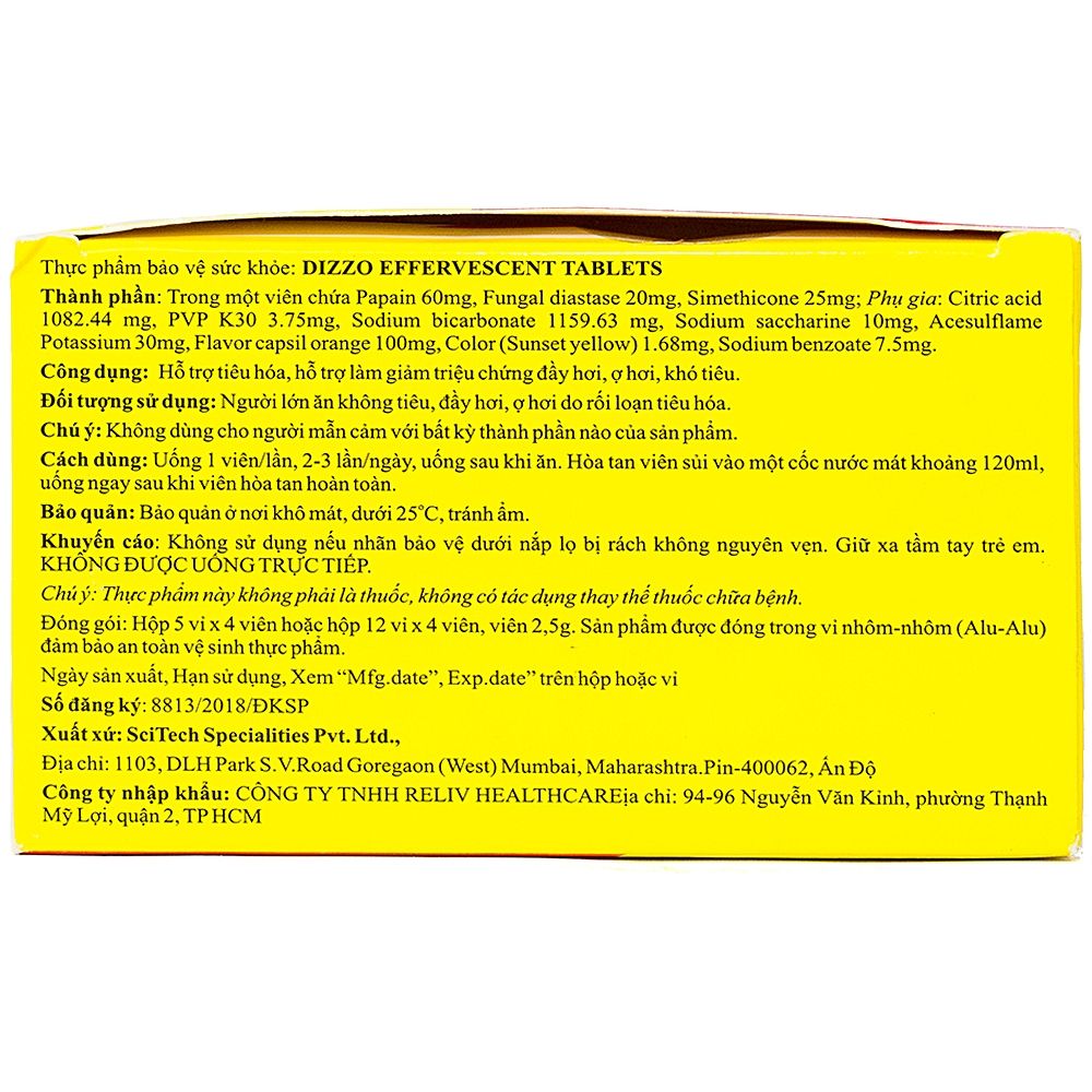 - Viên sủi Dizzo Reliv hỗ trợ tiêu hóa, giảm triệu chứng đầy hơi, ợ hơi, khó tiêu (12 vỉ x 4 viên)