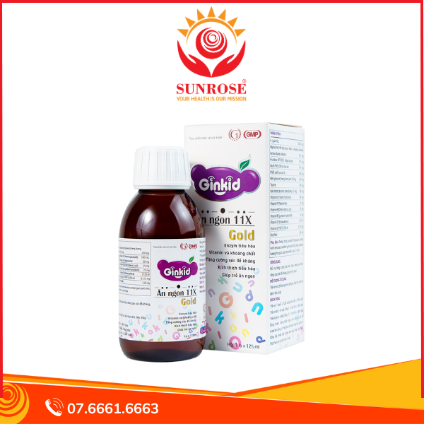 Ginkid Ăn Ngon 11x Gold hỗ trợ tăng cường tiêu hóa, tăng cường sức khỏe, nâng cao sức đề kháng, giúp trẻ ăn ngon.