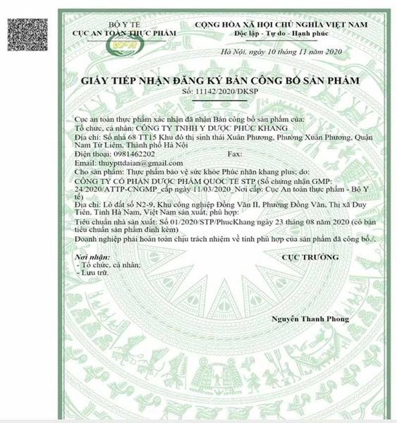 - Và chịu trách nhiệm chất lượng sản phẩm này chính là Công ty TNHH Y Dược Phúc Khang – Thương hiệu nổi tiếng chuyên nghiên cứu các loại dược liệu hỗ trợ điều trị bệnh có nguồn gốc từ thiên nhiên.