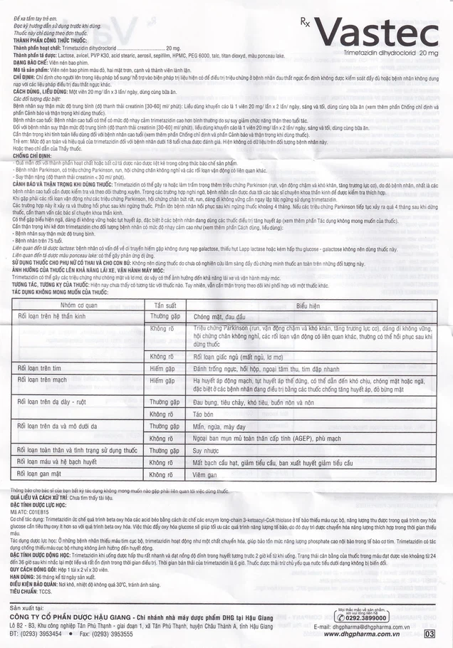 Thông tin thành phần: Trimetazidine 20mgCông dụng