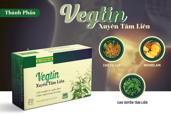 - Vegtin Xuyên Tâm Liên - Viên Uống Hỗ Trợ Giảm Viêm Họng & Ho Khan Ho Đờm