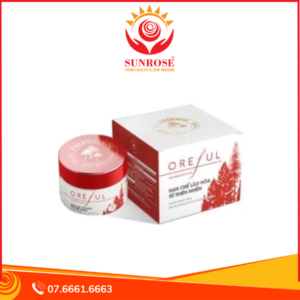 Và trong Oreful được điều chế từ chiết xuất thông đỏ có chứa hoạt chất Pycnogenol – chất này nổi tiếng với những tác dụng vượt trội dành cho da.