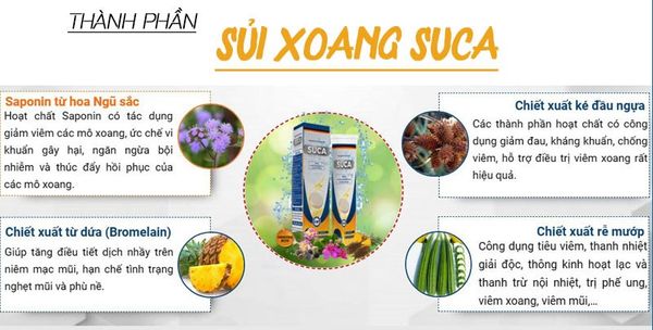 Ngoài ra, sự kết hợp từ các chiết xuất thảo dược quý có trong tự nhiên, đã loại bỏ hết tạp chất, mang đến từng sản phẩm Suca với độ tinh khiết cao, hỗ trợ cải thiện các triệu chứng của bệnh viêm xoang mà không lo tác dụng phụ.